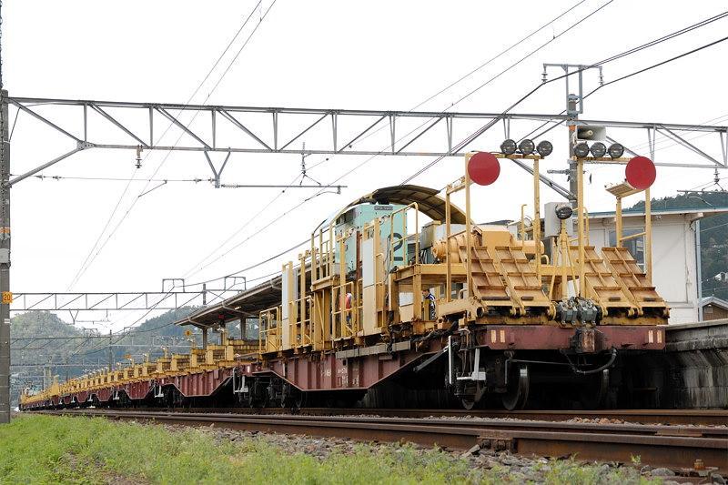 ▼ 醒ヶ井〜米原間を駆けるユーロ塗装のEF6435牽引のレール輸送列車