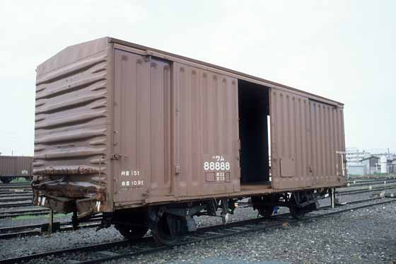 1981/08 香椎貨車区 事故後疎開時の画像。連結器周辺を破損している。