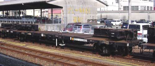 両端に新幹線用の密連があり、甲種車両の中間に連結されるそうです。 ※ チキ7000からの改造車。