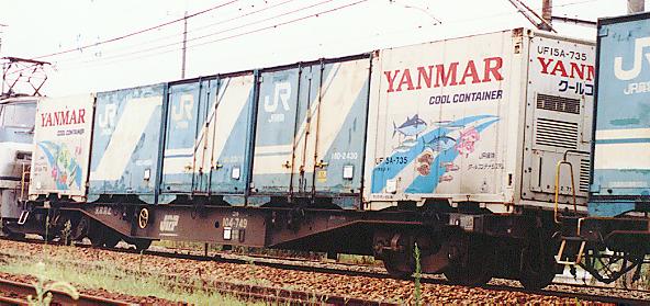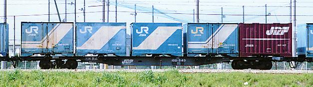 コキ102の500番台車は、デッキを持たないコキ102の車体長をデッキ付きのコキ103と