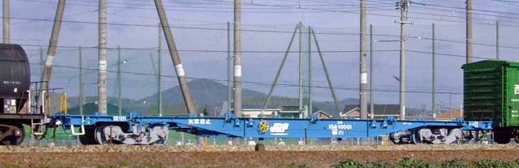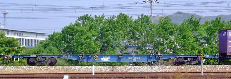 ▼ コキ104-10001 一般車化改造後の姿。全検回送中。