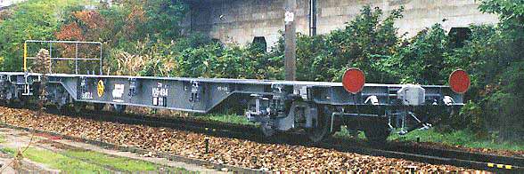 新製回送中の姿。緊締装置が全て下りている。