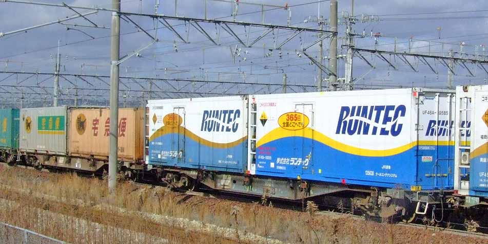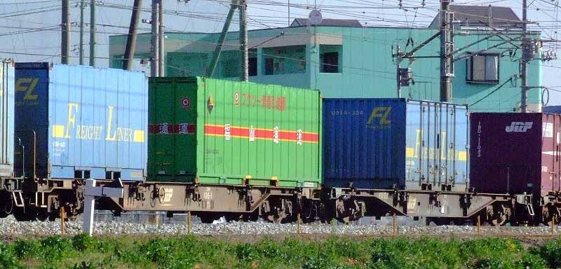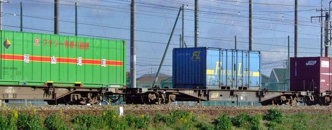 コキ106-1を押さえようと狙うも既に遅し、何とか狙っても標識にかかる。 コキ104-1はもうナンバーが判定できない…