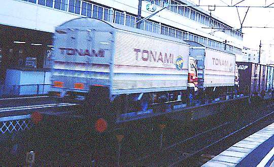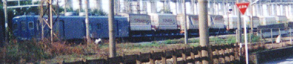 ▼ 山陽路でも、97,8年頃まではクムの4両編成がコキの上り寄りに連結されていた。 いつしか、クムは1両だけになり、2000年を待たずして消滅してしまった。