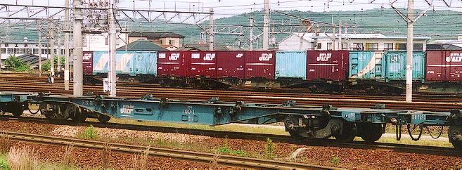 ▼ コキ100-1。 この車両にもパッチが当たっているが、コキ100系の試作車であること、