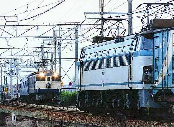 ちょっと変わった1枚。 まだネットでの情報をうまく判断できなかった頃、マヤなはの通過日を1日間違えて出撃。 (マヤなはの通過は実は翌日^^;) 一瞬、遅れてきた貨物にかぶられた、と思いきや、なは にマヤの姿はなし。 架線ビームの位置がダウトだけど、こんな画もちょっと面白い、かな?