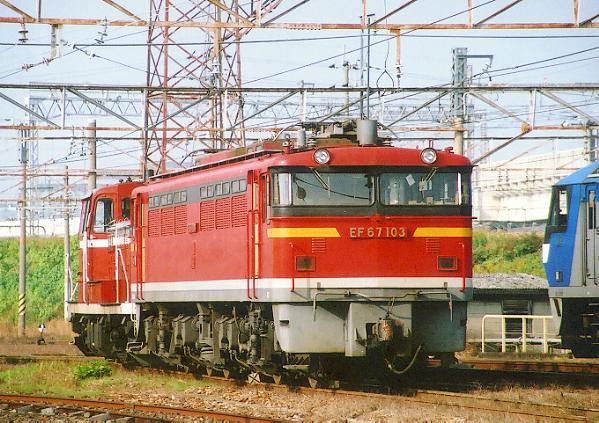 これも重単? いえいえ、機関区での構内入れ換え中の姿です。 EF67は瀬野〜八本松の後押し機関車ですので、通常は広島(タ)〜西条でのみ見ることができる 機関車ですが、車輪削正のため、時々岡山機関区に顔をだします。 岡山機関区には赤い機関車はDE10しか居ませんので、とても良く目立ちます。 あ、DE70がいる、というツッコミはナシで。 ヤツはしかも水島臨海鉄道のカマですし…
