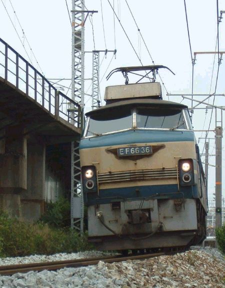 現在、原色のEF66はJRFには27,33,36の3機が残るのみ。 ブルトレ廃止で余剰となった下関の66はどうなっただろう? いわゆる国鉄色の66は901,1〜55の56両が存在したが、 現在は除々にその数を減らしている。 現在、新更新色と呼ばれているグループが増えているので、 JR貨物色と呼ばれる従来の更新色とその数が拮抗するのも そう遠い日ではないだろう…