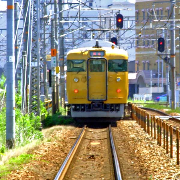 北陸の交直流電車は七尾線の漆色、北陸線は濃青色。