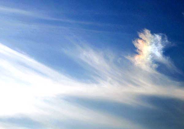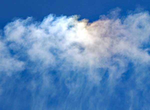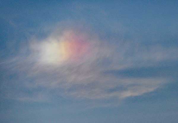 | 赤色が横に延びているので太陽との位置関係から彩雲と判断。 |