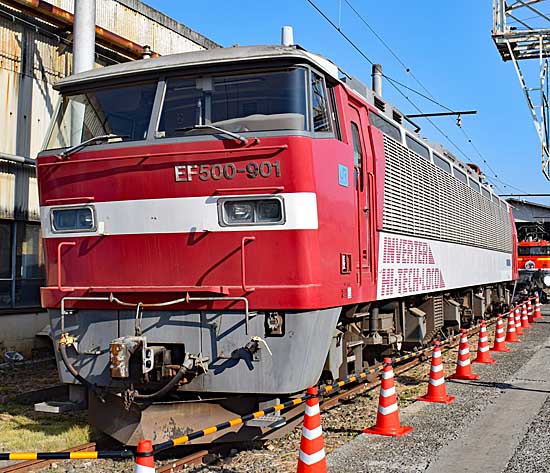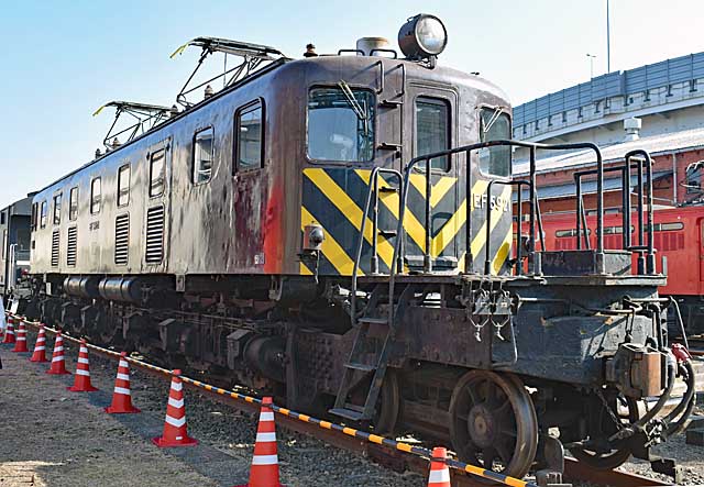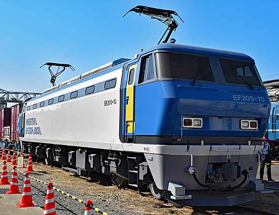 | 2番線の展示。 原色に塗装されたEF200-10。 |