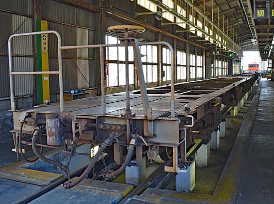 4番線 EF67後方の屋根下に留置されていたコキ。 手前から